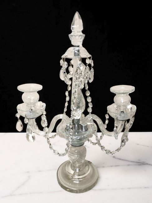 A reproduction twin branch crystal table lustre, height 51 cm.