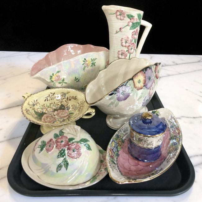 Seven items of Maling lustre china.