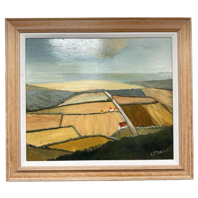 Stephanie Dingle (1926 - 2017) : Road to the sea, oil on board, with The Manchester Art House Gallery label verso, 59 cm x 49 cm.