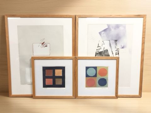 After Roy Speltz : Gridlock, reproduction in colours, signed and titled in pencil to margin, 27 cm x 27 cm, together with a similar work entitled 'Orbit', and two further large prints. (4)