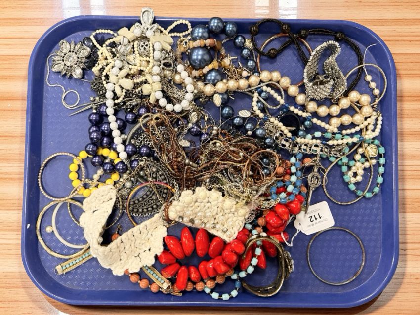 A quantity of costume jewellery, necklaces, faux pearls, beads, etc.