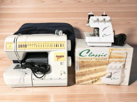 A Toyota Jeans Plus electric sewing machine, and a further Classic overlock machine.