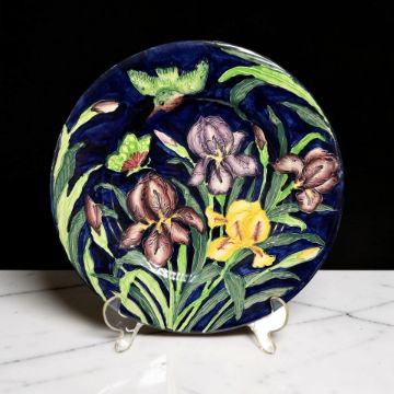 A Maling lustre cabinet plate depicting a kingfisher in flight above flowers, diameter 29 cm.