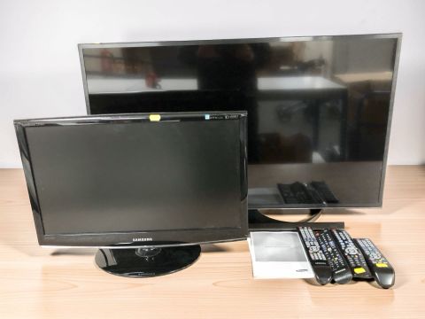 A Samsung 40" LCD TV, a further Samsung TV, with leads and various remotes.