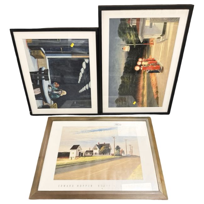 After Edward Hopper : Route 6 Eastham, colour print, 38 cm x 54 cm, together with two further Edward Hopper prints.