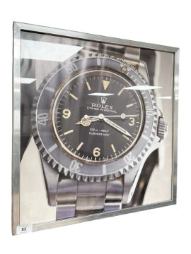 A colour print of a Rolex Submariner, 49 cm x 49 cm.