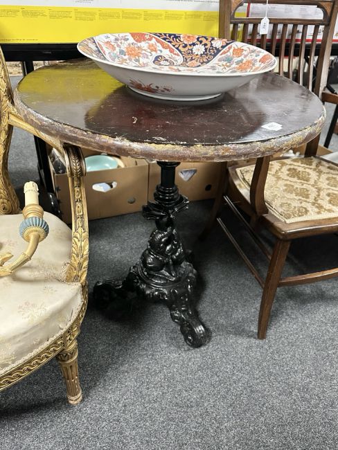 A Britannia-style painted cast iron pub table, height 72 cm.
