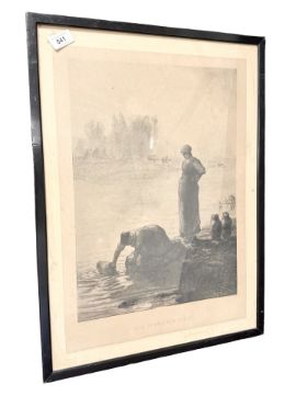 A 19th century French monochrome print 'Les Puiseuses D'Eau', 42 cm x 58 cm.