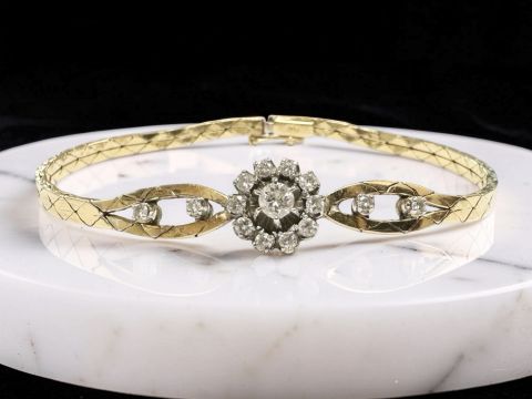 An 18ct gold diamond cluster bracelet, length 17.5cm