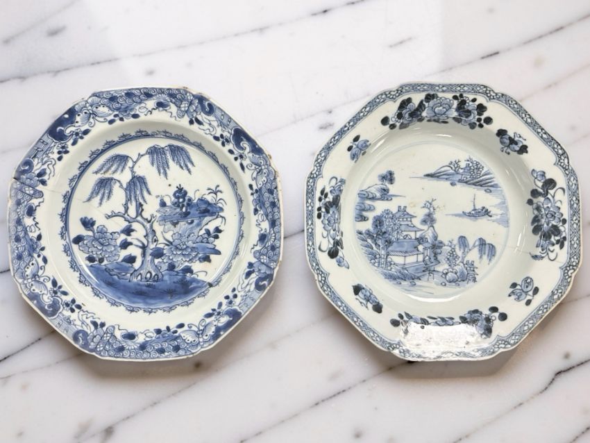 Two Chinese blue and white porcelain octagonal shallow bowls, Qianlong, 18th century, each 23 cm diameter.