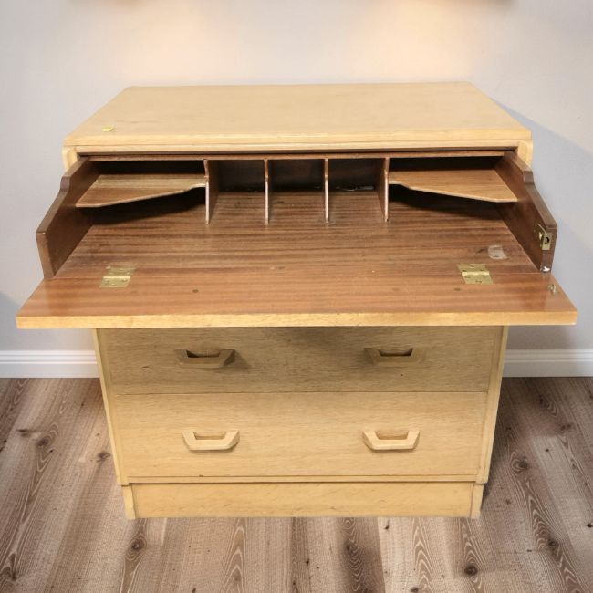A mid-century oak veneered and teak four drawer chest, width 77 cm.