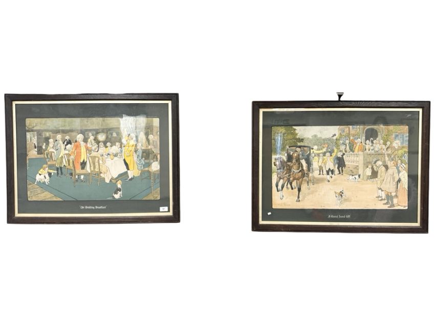 Victor Venner : The wedding breakfast, colour print, 73 cm x 52 cm, together with the companion piece titled 'A good send off', both framed. (2)