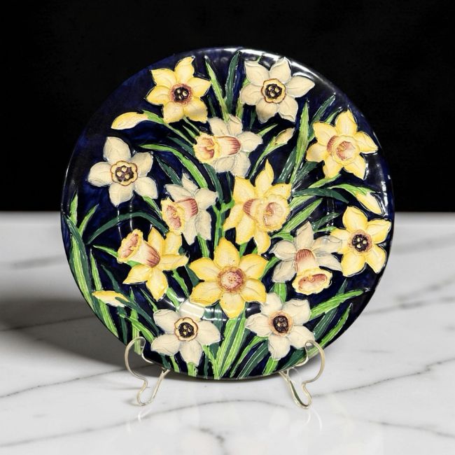 A Maling lustre daffodils cabinet plate, diameter 29 cm.