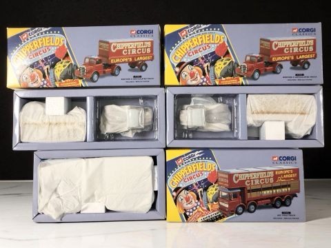 Corgi Chipperfield's Circus models to include 97303 Bedford O articulated truck (X2), and 97896 AEC pole truck.
