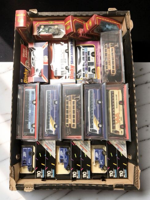 Boxed die cast buses and delivery vans including Corgi Original Omnibus, Matchbox, Cameo, etc. (1 box)