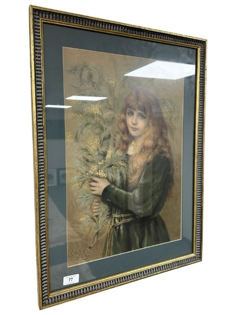 After Edith Scannell : Portrait of a child with flowers, colour print, 50 cm x 34 cm.