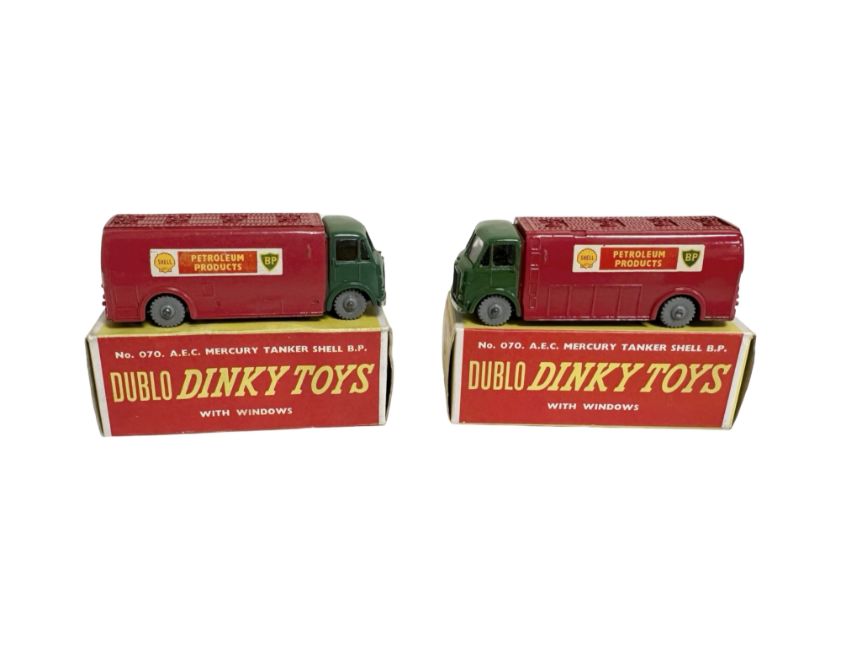 Two Dublo Dinky Toys die cast No. 070 A.E.C. Mercury Tanker Shell B.P., both in original boxes. (2)