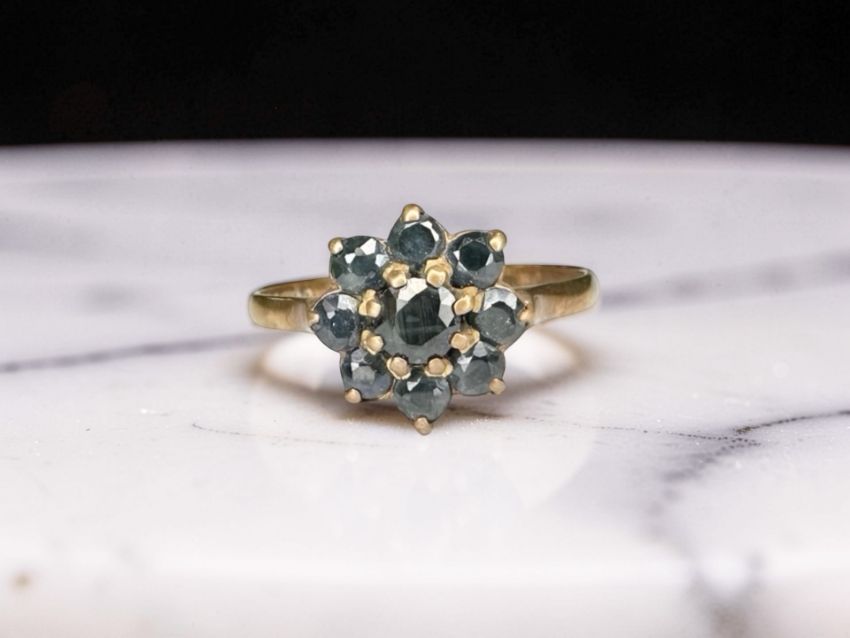 A 9ct gold blue kyanite cluster ring, size Q