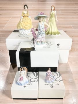 Five Royal Doulton ladies : Coralie, Dressing Up, Gemstones Collection August Peridot, Barbara and Annabelle, all with boxes