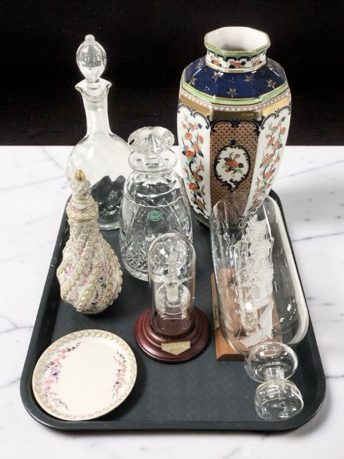 A Losol Ware imari vase, Stewart Crystal decanter, ship in bottle of the Bounty, pottery bottle with stopper, etc.