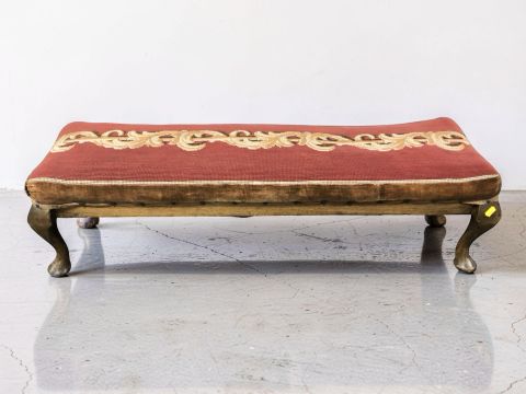 A late Victorian beech rectangular stool on pad feet, length 110 cm.