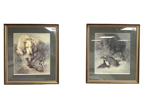 After William Woodhouse : Gun Dog with Duck, reproduction in colours, numbered 62 from the limited edition of 500, 40 cm x 36 cm, together with the companion piece after the same artist, framed as a pair. (2)