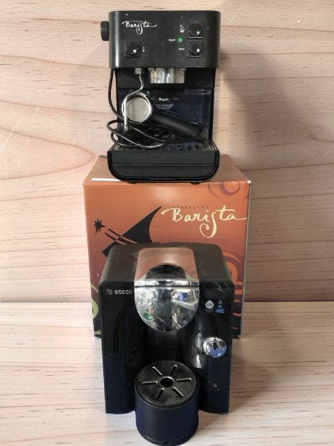 A Bosch coffee machine and a Starbucks Barista coffee machine with box.