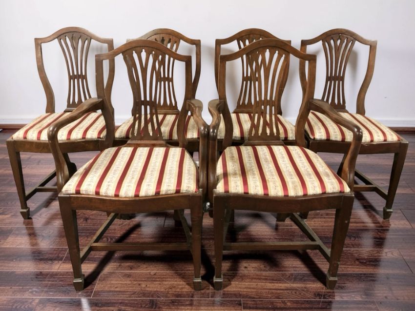 A set of six reproduction mahogany shield back dining chairs.