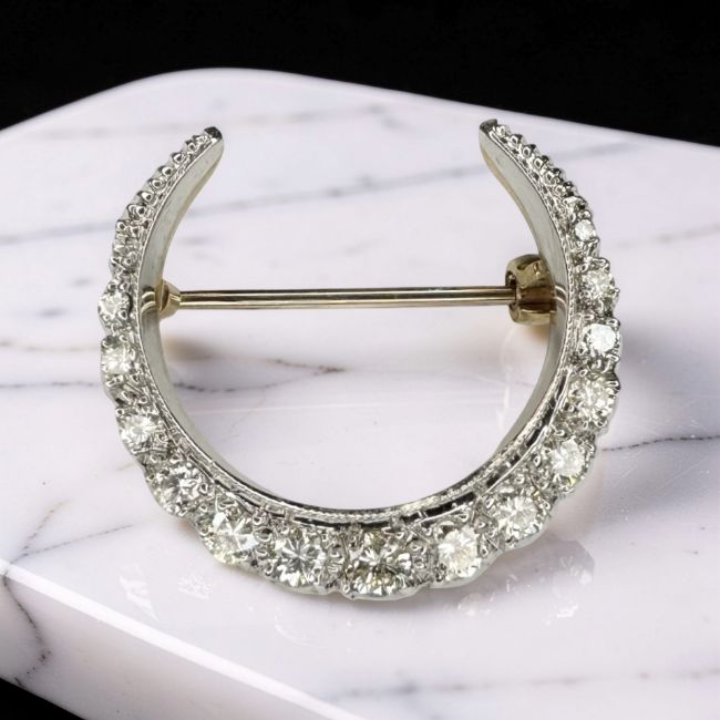 A 9ct gold diamond crescent brooch, width 2.5cm