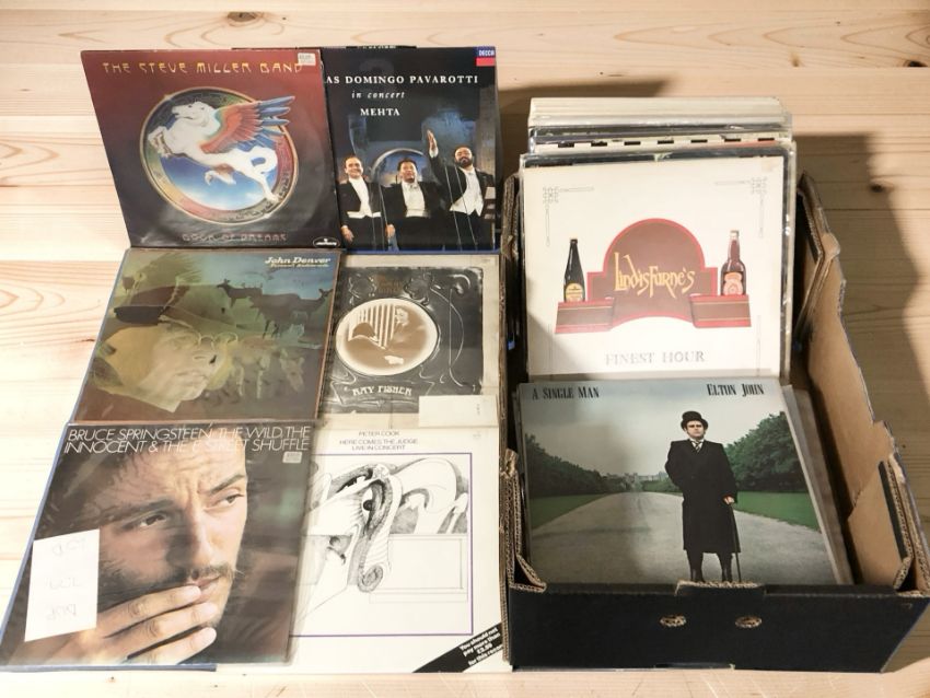 Vinyl records including Elton John, The Steve Miller Band, John Denver, Bruce Springsteen, Lindisfarne, other mixed artists, classical, etc. (1 box)