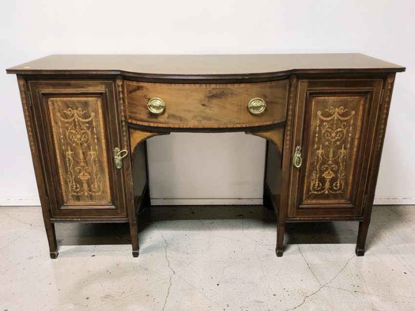 A late Victorian mahogany and satinwood marquetry inlaid bow front sideboard, 169 cm x 55 cm x 99 cm.