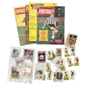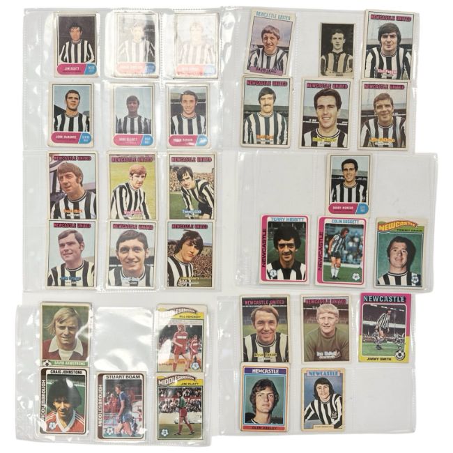 A collection of trading cards including some of Newcastle United and Middlesborough interest, 1970's Topps bubblegum cards, Pals Football Series, A&BC football cards, Anglo Confectionary, etc, plus several Football Monthly issues (one box)