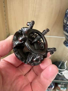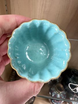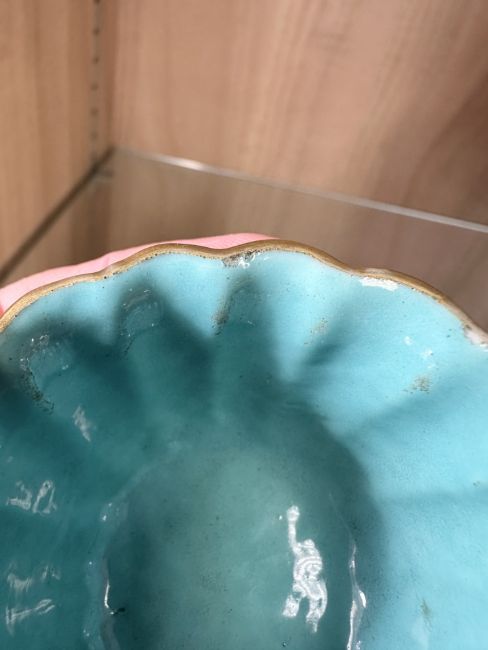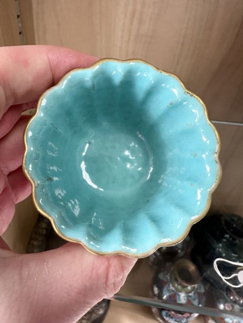 A couple of very minor flake chips to the inner rim of the cup. Typical minor surface wear. Overall good. See numerous additional images.