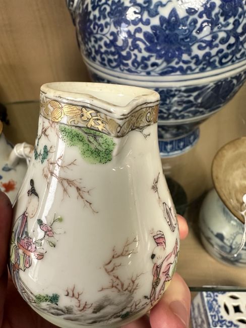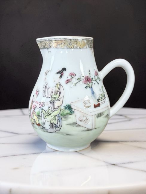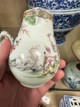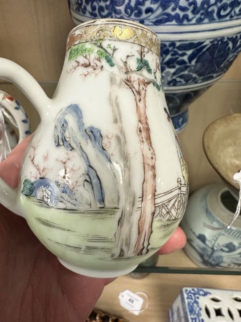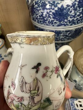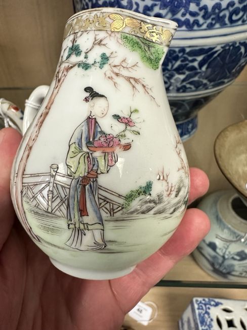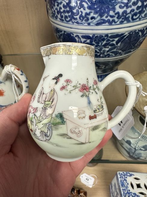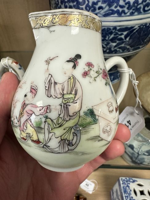 A Chinese famille rose porcelain sparrow beak jug, Qianlong, 18th century, height 10 cm.