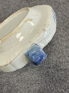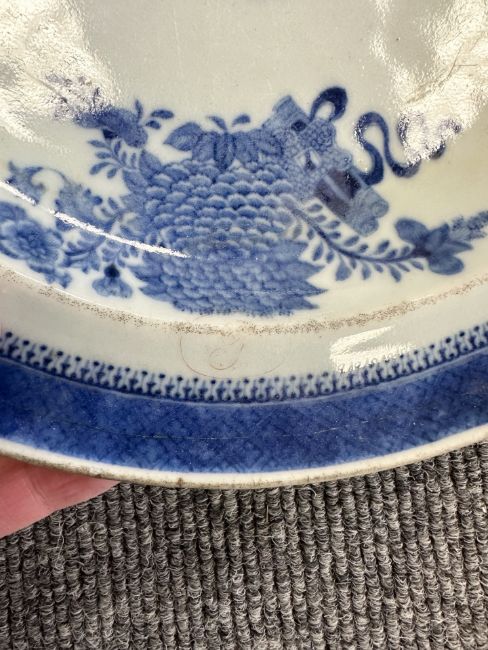 Both with typical surface wear. One appears undamaged. The other has a large crack running around the underside. This looks like a firing crack which over time has expanded into a hairline crack. See additional images.