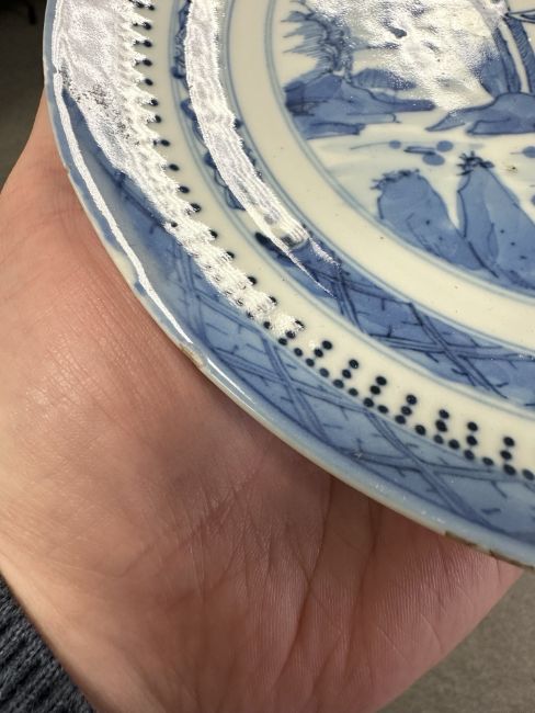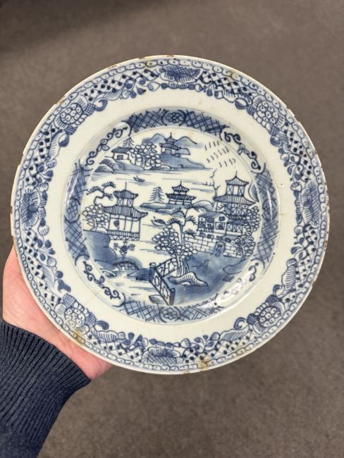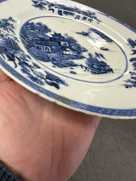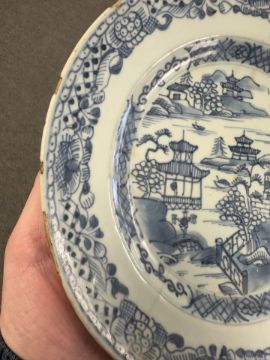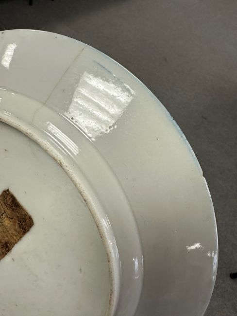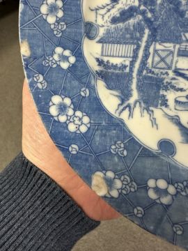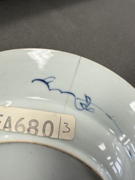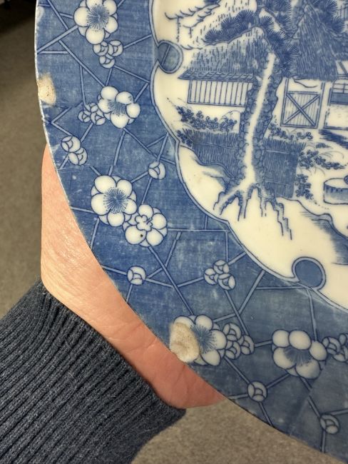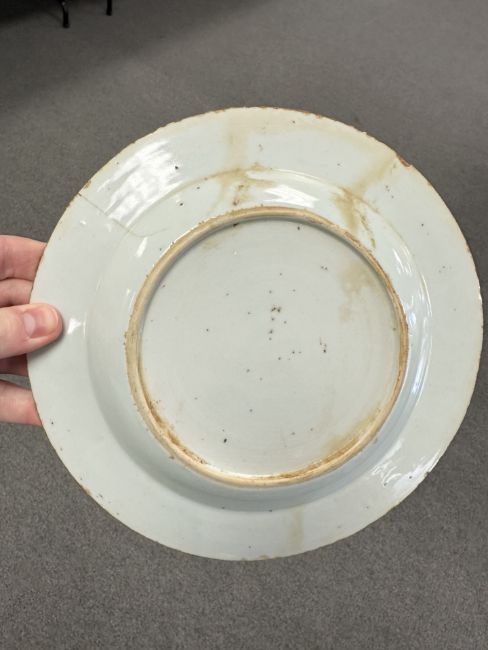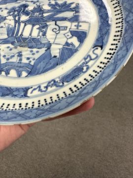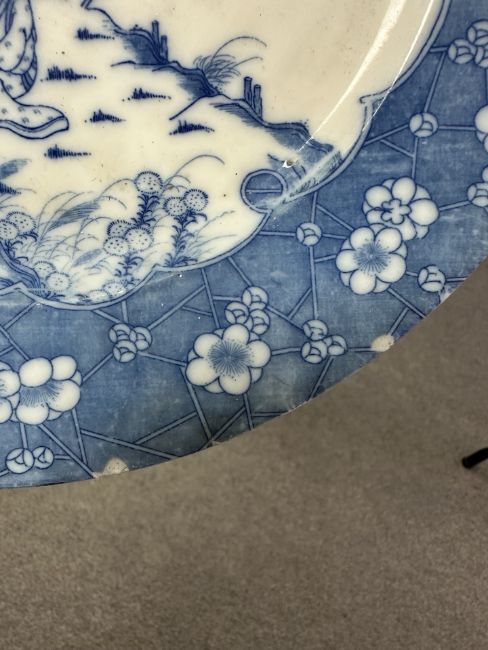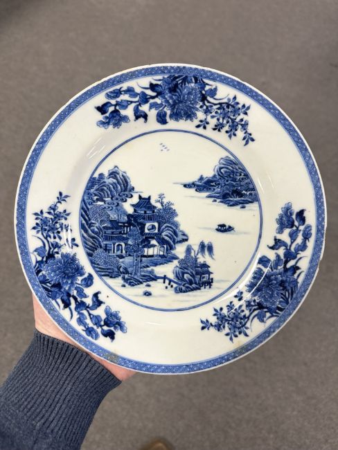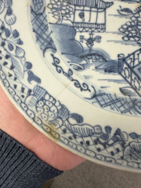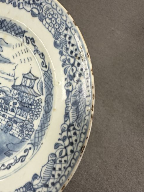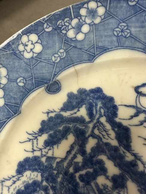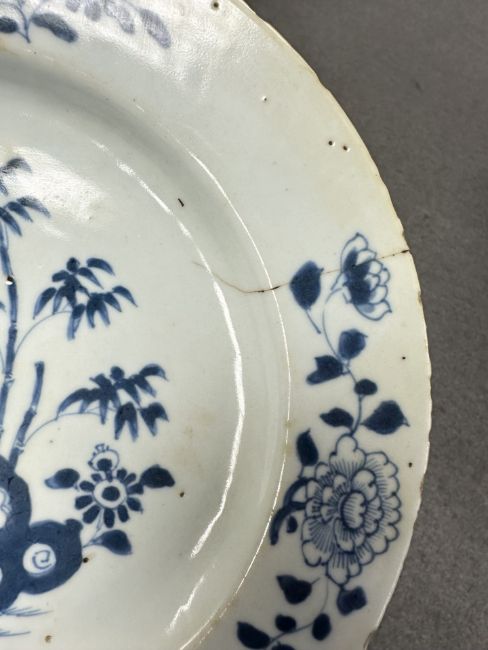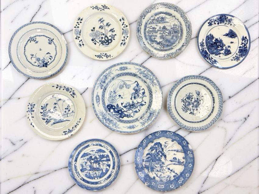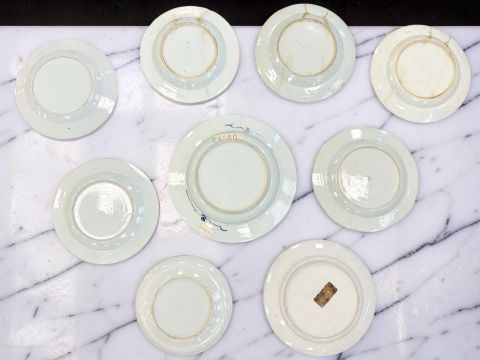 One plate (middle row, left-hand side in main photograph) appears to be in good condition with no faults to mention. All others with imperfections, ranging from small historic chips, to large hairline cracks etc. See numerous additional images.