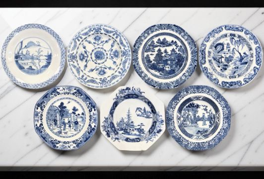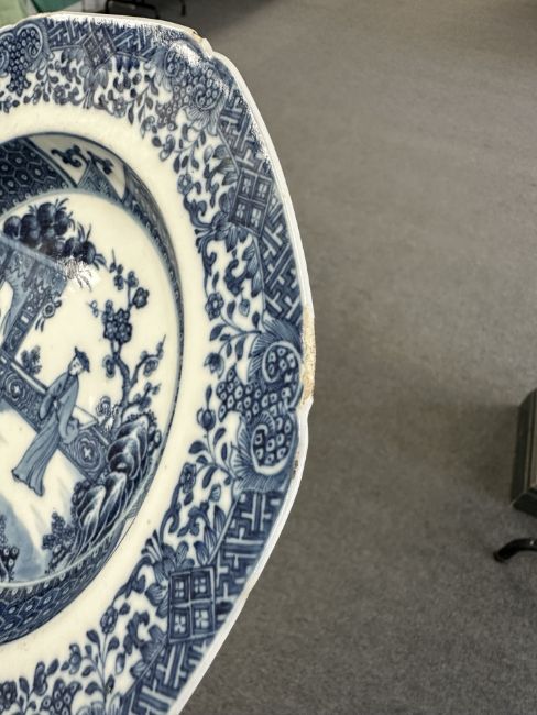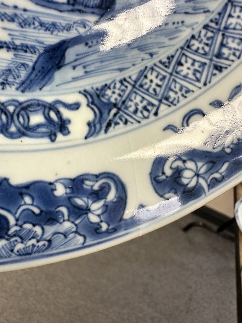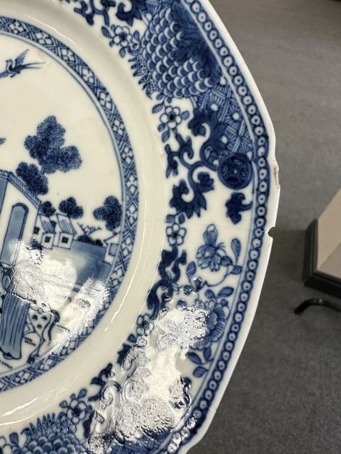 All plates with imperfections, ranging from small historic chips, to large hairline cracks. See numerous additional images.