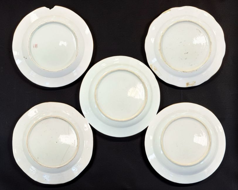 A Chinese Imari porcelain shallow bowl, Qianlong, 18th century, diameter 23 cm, together with two armorial plates and two further blue and white plates of similar period. * Provenance - The Michael Trethewey Collection, sold David Lay Auctioneers, 12th August 2021. CONDITION REPORT: First plate with several old chips to rim but no obvious hairline cracks. Second plate in similar condition. Third armorial plate with piece missing at the top edge, and a hairline cracks. Fourth armorial plate with old chips around the rim. and hairlines. Fifth blue and white plate with large hairline crack. See numerous additional images.